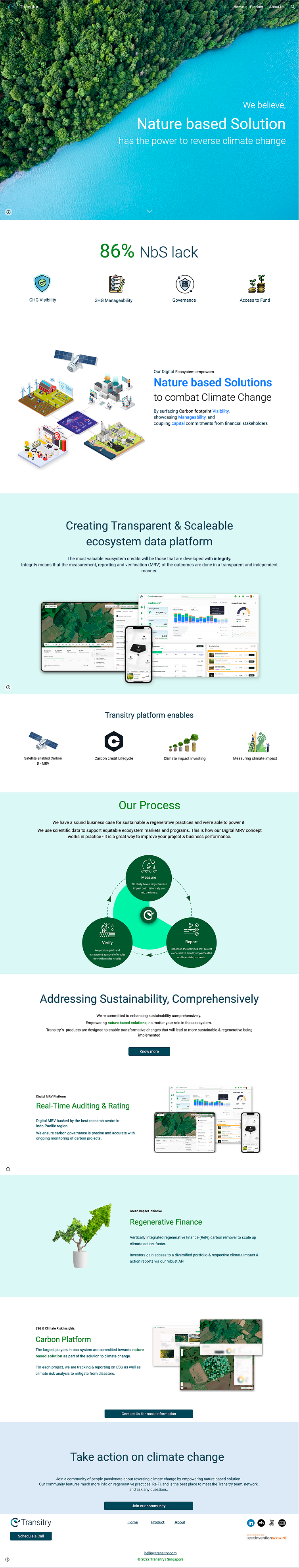 Transitry is a Singapore-headquartered climate-tech startup (with operations in Bengaluru, India) focused on digital MRV (Measurement, Reporting, and Verification) solutions for nature-based carbon credits and climate action.