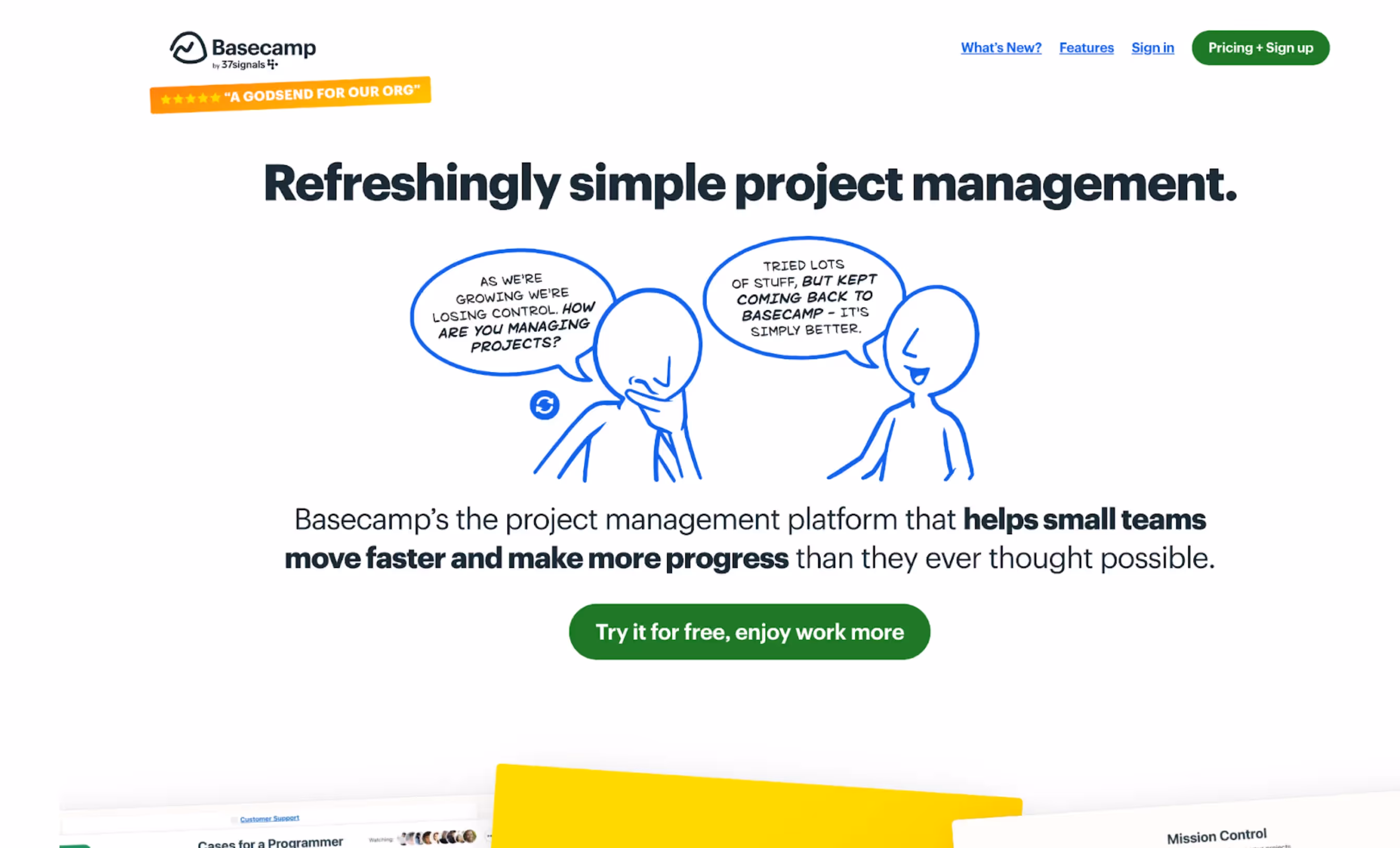 Take basecamp for example. The hero section does a fabulous job of clearly communicating “what” is basecamp and what it does and for “who”. The sub-text even ends with an aspirational set of words, extending possibilities.