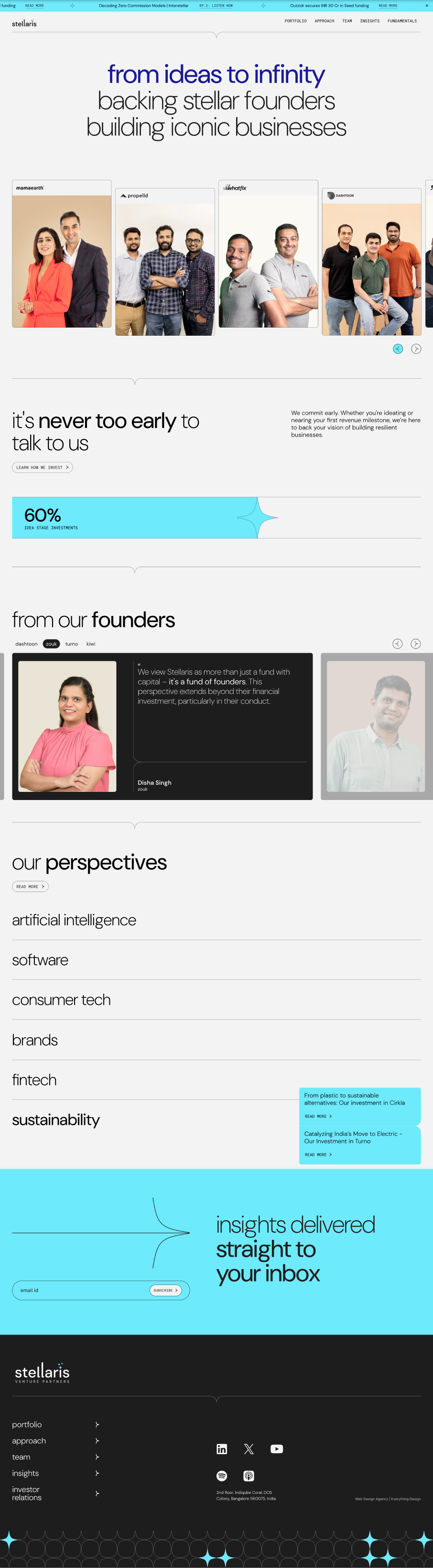 Everything Design continues to work with Stellaris on an ongoing basis — new pages, website maintenance, and evolving the digital presence as the fund grows. This sustained partnership, visible across the VC community, is also one of the reasons Z47 (formerly Matrix Partners India) started working with Everything Design. When VCs in the ecosystem see that a peer fund trusts an agency enough to maintain a continuous relationship, it signals something about the quality and reliability of the work. That's the kind of trust that doesn't come from a pitch deck — it comes from consistently delivering value over time.