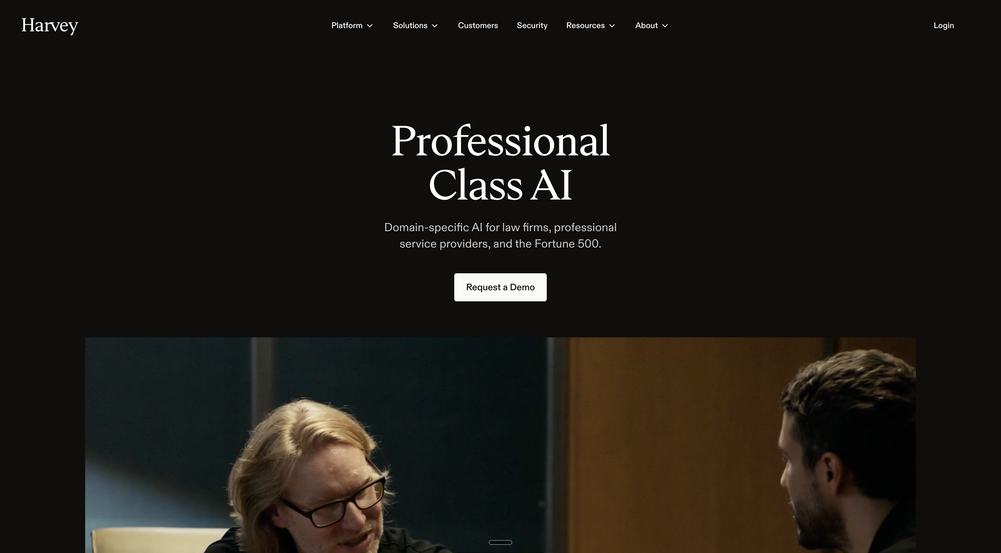 Harvey positions itself as "Professional Class AI" with a minimalist, sophisticated brand identity that conveys precision and expertise. The website emphasizes trust and institutional credibility, featuring partnerships with Fortune 500 companies and 50% of AmLaw 100 firms. Basement Studio designed Harvey's brand from seed stage through its $1.5 billion valuation, incorporating micro-animations and product demo videos to maintain momentum. The visual identity reflects the company's dual founding—combining legal expertise (founder Winston Weinberg from O'Melveny) with cutting-edge AI research (co-founder Gabe Pereyra from Google Brain and Meta).